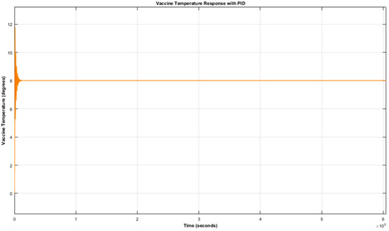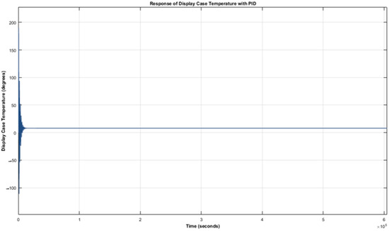 From Figure 3 and Figure 4, it can be observed that the vaccine and the display case temperature responses have initial oscillations for about 16,200 s (i.e., 4.5 h) before finally settling at 8 °C. This implies that temperature excursions occurred during the period of oscillation, making the stored vaccine temperature go beyond the recommended range, which is detrimental to vaccine potency. Therefore, it can be deduced that the PID controller is not suitable for the control of a fridge display case for the purpose of vaccine preservation.