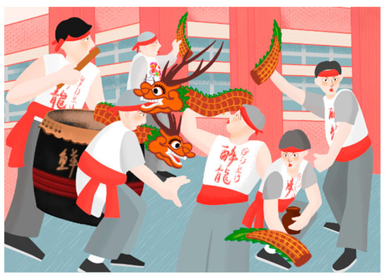Every year on the eighth day of the fourth month of the lunar calendar, the “drunken dragon dance” team performs in groups of two with one holding the dragon’s head and the other holding the dragon’s tail. They tour seven major vegetable markets in Macau. The dancing posture of the dancers expresses drunkenness. During the dance, the dancers enter the side and spray wine into the air, implying that the dragon sprays water. In 2009, it was officially included in the Macao Intangible Cultural Heritage Preparatory List, and in 2011, it was officially included in the third batch of the national intangible cultural heritage list. The Drunken Dragon Festival, as a traditional cultural festival in Macao, contains rich cultural connotations and represents the intangible cultural heritage of humans. It is a characteristic traditional culture of Macao and is of great significance to the popularization and promotion of traditional culture [4]. Therefore, the Macau government has focused on promoting and organizing related groups and projects, making the Drunken Dragon Festival a precious traditional folk dance art event and providing participants with generous bonuses.