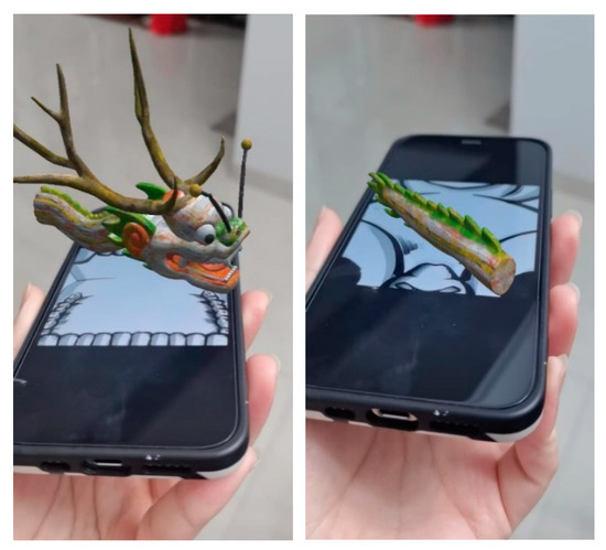 Dynamic images in the AR interactive design and experienced learning mode were created for intangible cultural heritages. Users observed and understood the traditional shapes, colors, and materials of the drunken dragon with 360 stereoscopic effects. Then, they understood the cultural value, development, and current situation of the Drunken Dragon Festival. The learning motivation of the users with the interactive materials was explored to understand the satisfaction, effectiveness, and sustainability of the design. The interaction was mainly for the single-user experience. In the future, extended production can be added for multi-person modes. Moving pictures may allow users to choose the level of experience interaction at different levels, which needs to be discussed and analyzed for the feasibility of teamwork learning.