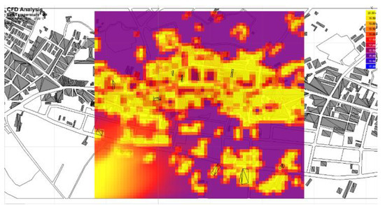 Cell temperature by CFD analysis in the area of the ancestral hall buildings. (Source: Author 2022).