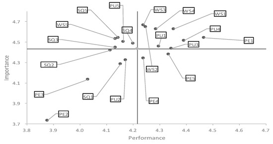 Nevertheless, for our study and future research areas, some limitations may be worth attention. First, the interpretation of attributes near the thresholds of discrimination is a problem in IPA. It is challenging to interpret these characteristics with an acceptable confidence level [23,24]. Because the mean, which is often applied to indicate the significance and effectiveness of a characteristic, does not reveal information regarding a distribution’s variability, the results must be evaluated with great care. Second, while the ease of use and understanding of IPA may explain its widespread acceptance and application, this does not necessarily ensure its validity [19].