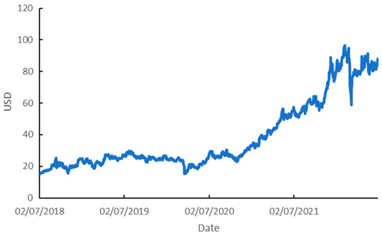 Data collected from Investing.com (https://www.investing.com/, accessed on 5 August 2022).