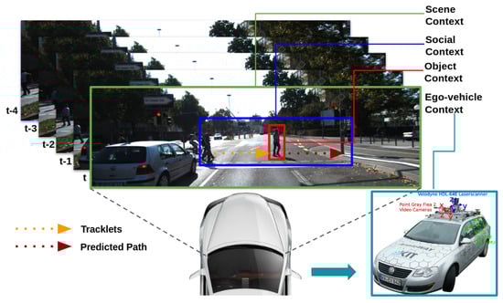 - Bartoli, F.; Lisanti, G.; Ballan, L.; Del Bimbo, A. Context-aware trajectory prediction. In Proceedings of the 2018 24th International Conference on Pattern Recognition (ICPR), Beijing, China, 20–24 August 2018; IEEE: Piscataway, NJ, USA, 2018; pp. 1941–1946. [Google Scholar]
