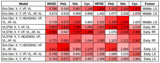 - Park, S.H.; Kim, B.; Kang, C.M.; Chung, C.C.; Choi, J.W. Sequence-to-sequence prediction of vehicle trajectory via LSTM encoder-decoder architecture. In Proceedings of the 2018 IEEE Intelligent Vehicles Symposium (IV), Suzhou, China, 26–30 June 2018; IEEE: Piscataway, NJ, USA, 2018; pp. 1672–1678. [Google Scholar]