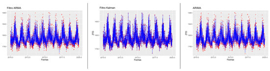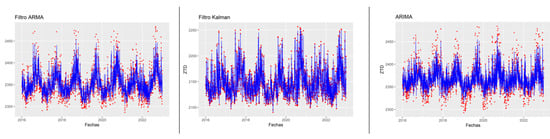 Figure 10, the application of the ARIMA, ARMA models and the Kalman technique on the filtered data is shown. In