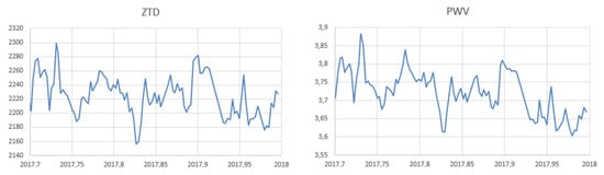 15]. In addition, the graphs of the ZTD and PWV values corresponding to the EH01 station from September 2017 to 2018 will be shown.