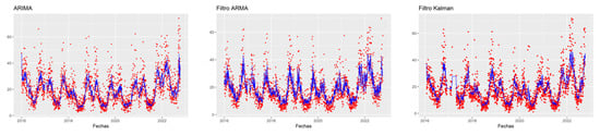 Figure 6 shows the application of the ARMA, ARIMA and Kalman models for different stations. In the
