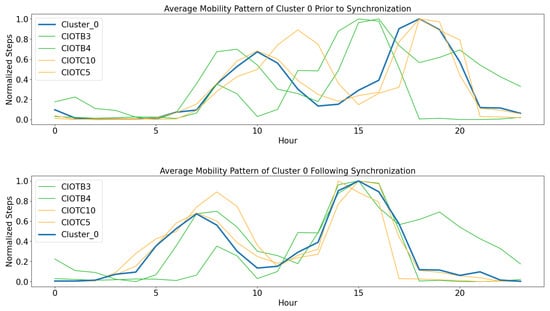 When examining the mobility patterns of individuals, it is useful to consider the average mobility patterns over a 24 h cycle. However, due to differences in individual sleep and work schedules, these patterns may not necessarily align perfectly with each other. This can result in a phase shift, where the 24 h cycle of one individual is shifted forward or backward relative to another individual.
