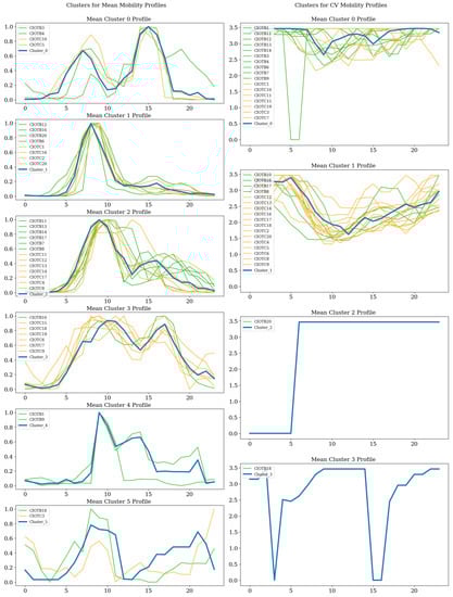 To gain a better understanding of the correlation between clusters based on the CV and 24 h mobility patterns, reference can be made to the Sankey diagram presented in