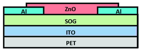 Polyethylene terephthalate (PET) was used as substrate for all devices covered with Indium tin oxide (ITO). 85 nm-thick Spin on glass (SOG-SiO2) was used as the dielectric film. The thickness of aluminum contacts was 100 nm, deposited by e-gun and wet etching patterned. The ZnO active layer (90–100 nm) were deposited at 200 °C by high-frequency ultrasonic spray pyrolysis technique on a hot plate under atmospheric pressure [8]. The electrical characterization was made using a Keithley-4200 equipment.