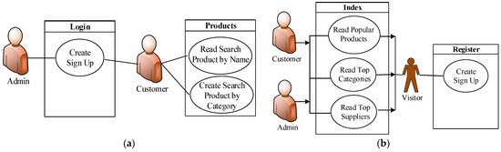 Design of the homepage for the application (a) Setup for customer and admin; (b) setup for the admin, an existing user as customer and for a new client visiting the page.