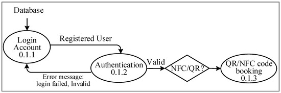 During the DFD Level 0 phase, the layout of the architectural design for the mobile application is presented. The context diagram describes how the project interacts with the environment. The external entities and data flowing in and out of the system are clearly outlaid. Figure 5 and Figure 6 show the NFC/QR booking and Payment architectural structure.