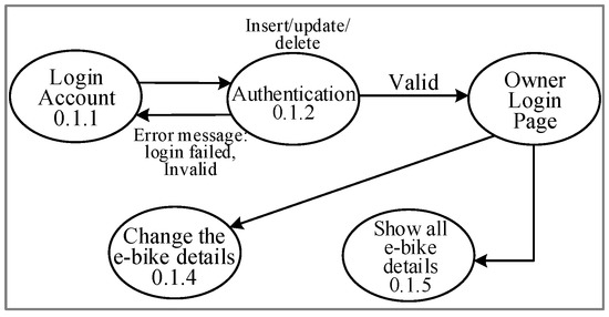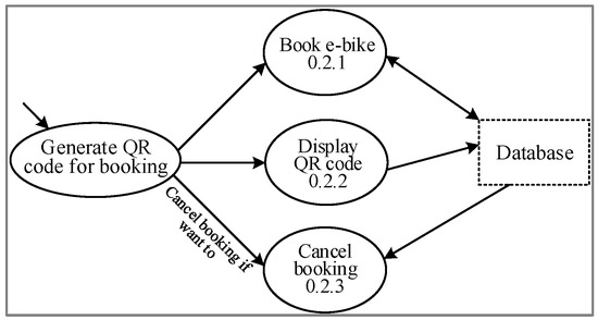 During the DFD Level, the data flow diagram for this stage is used to register or decline new users. On the admin database, the availability of e-bikes can be confirmed, as well as whether an existing user can gain access. The DFD is shown in Figure 7. This diagram shows the DFD for a Registered User using a QR/NFC code. Figure 8 shows how the data flow diagram is designed for the administrator side.