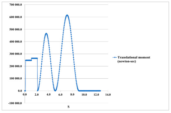 The translational motion relative to the angle is shown in Figure 9, which shows 14 s of 60 Newton-seconds. The translational moment, also known as the moment arm or lever arm, of an exoskeleton used for ankle joint rehabilitation during device testing refers to the distance between the axis of rotation of the ankle joint and the line of force. It determines the torque or rotational force applied to the ankle joint, which can affect the biomechanics and effectiveness of the rehabilitation process.