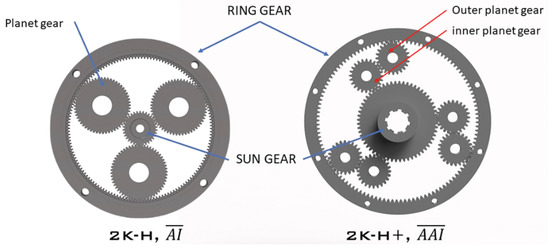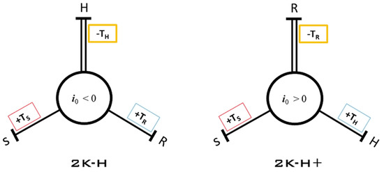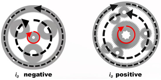 The use of a second row of planets leads to a variety of consequences. Most notably, the direction of rotation of the ring gear is reversed compared to the single row 2k-H and the direction of rotation of the carrier Figure 2. This makes the internal gear ratio i0 positive—the carrier and the ring gear rotate in the same direction, which explains why this gear type is referred to as a positive planetary gear train [1,2,4].