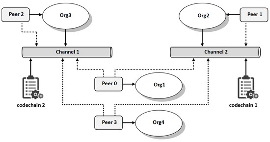 The IoT peer (peer 2) records the information about the assets in each warehouse in channel 1. Logistics center (peer 3) has read-only access to all channels.