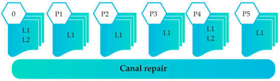 The channel scheme is visualized in Figure 5. The actors are named P1—WSS company, P2—customer, P3—sensor, P4—repair company, and P5—institution. All of them have identity certificates and are recognizable by the system, i.e., can transmit data. This is rendered with CC1. The employee who verifies the data is like an orderer node. All of them have recognized the smart contract under whose rules they work. They also have a copy of the L1 book in which they record data as they are received. It can be seen, however, that node P4 has two books. It also operates under two smart contracts. This is not shown in the figure, but this node is included in another channel. This is the participating repair company that orders parts from other companies, has subcontractors, checks inventory, or contacts financial institutions. This activity is described in another channel and the clients of the WSS company and the Ministry of Environment and Water are not interested in this activity. They at the same time cannot access the Ledger 2 data because they have not recognized the Ledger 2 smart contract.
