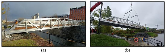 - Répertoire des Passerelles Conçues et/ou Fabriquées au Québec. Available online: https://aluquebec.com/repertoires/passerelles/ (accessed on 4 April 2023).