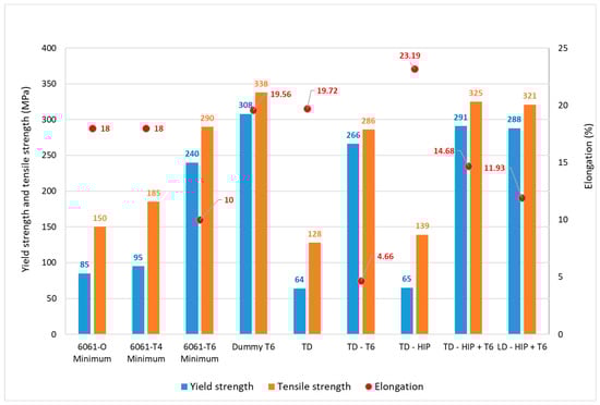 Figure 5, in which they are compared to the minimum requirements for 6061 plates of the same thickness.