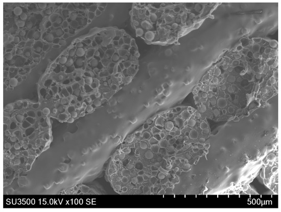 SEM micrograph of the 3D printed part using PLA/AlSi10Mg powder filament.