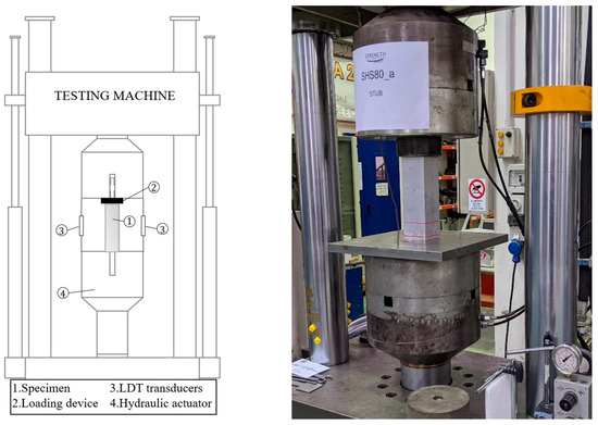 Stub column tests have been carried out to evaluate the maximum load and corresponding displacement of SHS aluminium members. The test setup is shown in Figure 3. The compression tests were provided by means of a Schenck Hydropuls S56 testing machine (maximum load 630 kN, piston stroke ± 125 mm). For each member, a minimum of two stub tests were tested. The loading protocol is based on the application of two different test speeds, equal for each specimen: an initial low speed equal to 0.42 mm/min up to post-elastic level and, successively, a final speed equal to 1.20 mm/min. The speed change was set for each specimen according to the theoretical yield displacement .