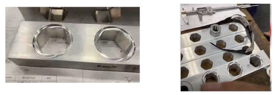 To perform the test, six flat bars were machined for S1, S2, and S3 solutions and for the two-type assemblies. Each flat bar had four identical holes, as shown in Figure 6.