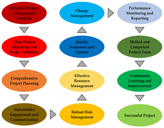 Effective project management practices are vital for successful construction projects, as shown in Figure 2. Key practices include well-defined objectives, scope, and deliverables, as well as effective communication with stakeholders [2]. Quality standards and a structured change management process are essential for meeting project standards. Systematic monitoring and reporting using KPIs is necessary [2]. A capable and motivated project team fosters a positive team culture. Embracing innovative technologies and industry best practices enhances project success and stakeholder satisfaction [9].
