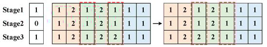 Randomly select order c, and its lots coding sorting for reverse sequence processing. For the variation of the distribution and encoding of the process machine, the two batches of the order c randomly select 0 or 1 for each process. If it is 1, the corresponding gene is exchanged, otherwise it will not be exchanged. An example of mutation is shown in Figure 3.