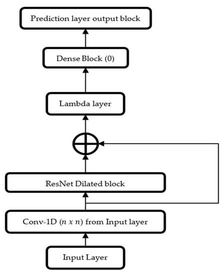 This method uses stacked convolutions with causal padding, dilation, and residual or skip connections to obtain a much larger receptive field. This TCN architecture has been shown to outperform traditional RNNs and vanilla CNNs in numerous tasks such as segmentation of some action and network anomaly detection. TCN has demonstrated superiority over LSTM in several domains such as traffic prediction, audio processing, machine translation, and human motion detection [5,9,10,11]. The internal cell structure of TCN is shown in Figure 4 below.