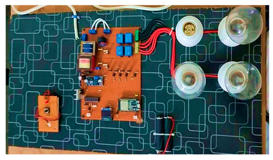 Four incandescent bulbs are used. Three of them have 100 W power ratings indicating a light load, while one has a 200 W rating, indicating a power load. Peak hours will be set by the supply company. As soon as peak times start, all power loads will turn off, and only a light load will remain on. And if the user tries to the connect power load with the light load terminal, simply by bypassing it. The system waits for 4 s, then restarts without switching off light loads. After 4 s, the system indicates this as a theft, and a message appears on the screen as ‘theft alert!’ and completely shuts down. It remains off for about 4 min, and after 4 min, the system turns on.