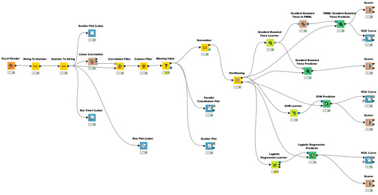 12. Berthold, M.R.; Cebron, N.; Dill, F.; Gabriel, T.R.; Kötter, T.; Meinl, T.; Ohl, P.; Sieb, C.; Thiel, K.; Wiswedel, B. KNIME: The Konstanz Information Miner. In Proceedings of the 31st Annual Conference of the Gesellschaft für Klassifikation e. V., Freiburg, Germany, 7–9 March 2007. [Google Scholar]