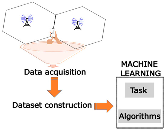 Articles pertaining to ML in HO cellular networks have underscored that the principal resource for an ML process is the input data. Within this context, two pivotal processes can be distinguished. Firstly, the data acquisition process, which concerns the manner in which HO data are obtained within cellular networks for subsequent analysis. Secondly, the construction of the dataset that will be incorporated into the modeling process, wherein the data are subject to cleansing and new variables are generated in accordance with the study’s requirements. Following the delineation of the data input, the ML process advances to encompass the algorithms employed, contingent upon the chosen learning approach and the modeling objectives referred to as the task of the ML process.