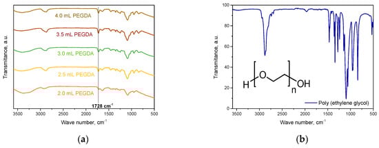 Spectroscopic analysis was performed in order to determine the chemical structure of the resulting hydrogels. Spectroscopic spectra are presented in Figure 2.