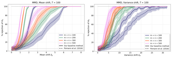 mmd We show here the results for mean and variance shifts for , but the results are similar for all tested sample sizes ,
