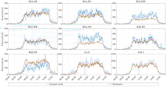Ground truth flows obtained from cross-validation sensors, and the corresponding estimated flows.