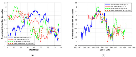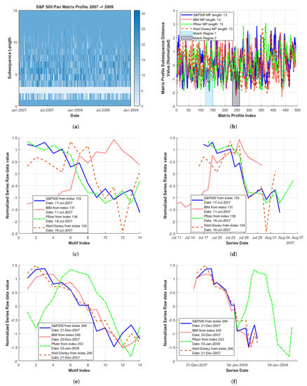 - Cartwright, E.; Crane, M.; Ruskin, H.J. Financial Time Series: Motif Discovery and Analysis Using VALMOD. In Proceedings of the International Conference on Computational Science, Faro, Portugal, 12–14 June 2019; pp. 771–778. [Google Scholar] [CrossRef] [Green Version]
