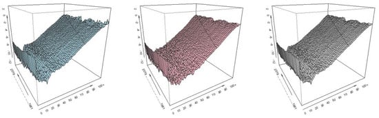 Lee and Carter [] proposed a “method for modeling and forecasting mortality: A model of age-specific death rates with a time component and a fixed relative age component, and a time series model (an autoregressive integrated moving average—ARIMA) of the time component.” (Booth, Maindonald, and Smith []) (Diaz-Rojo, Debon, and Mosquera []). They defined their model to fit the matrix of mortality rates as (3):