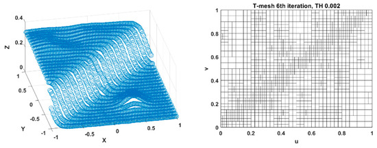 Reference surface under consideration and the corresponding T-mesh after the 6th iteration; threshold (TH) 0.002.