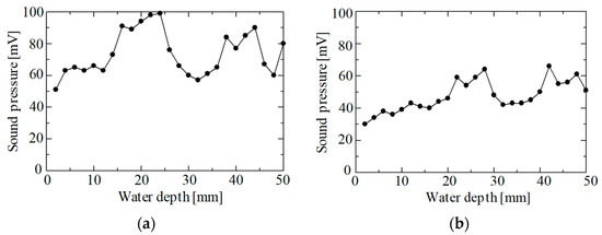 The relationship between water depth and ultrasonic sound pressure: (a) water level is 170 mm; (b) water level is 200 mm.