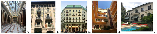 Different typologies of transparent envelope in modern buildings: (a) Real Casino de Murcia by Pedro Cerdan Martinez (1902); (b) Casa Galimberti in Milan by Giovan Battista Bossi (1906); (c) Looshaus in Vienna by Adolf loos (1912); (d) Novocomum in Como by Giuseppe Terragni (1928-29); (e) Villa Necchi Campiglio in Milan by Piero Portaluppi (1932), Italy (Sources: Elena Lucchi).