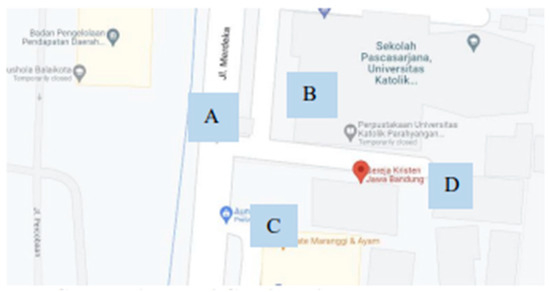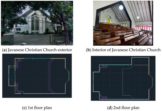 The Bandung Javanese Christian Church is located on Jl. Merdeka No. 28, Bandung, West Java, with the coordinates −6.911836″ S and 107.610834″ E. The building orientation faces westward with the boundaries as shown in Figure 2.
