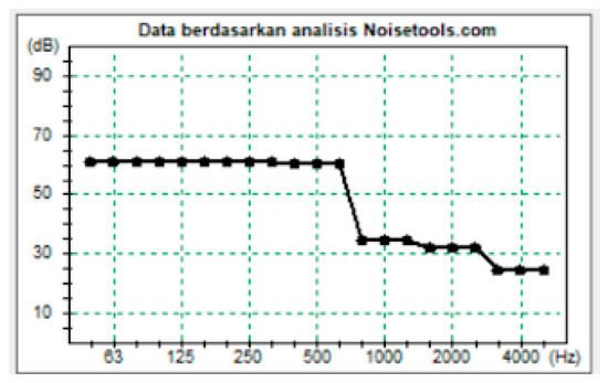 From the research results (Table 3), it is known that the Bandung Javanese Christian Church has a fairly high noise level for a place of worship. The data above show that the noise level at the Bandung Javanese Christian Church is around 67.1–100 dB. These data are used for NoiseTools.net multi-spectrum simulations. Data from the multi-spectrum analysis are below; see Figure 6.