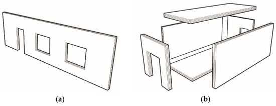 Timber-panel construction, also known as 2D construction (Figure 2a), has its roots in traditional balloon and platform construction methods. It has become a cornerstone of modern construction in countries such as the United States, Canada, and Scandinavian countries. There are several reasons for its growing popularity: (i) flexibility in design; it gives architects more freedom to create unique designs; (ii) ease of construction; this feature makes the method accessible to a wide range of contractors, regardless of their experience; (iii) sequentiality of installation; the ability to build floor by floor ensures efficiency and an orderly workflow; and (iv) speed of execution; the limited assembly time on-site speeds up the entire investment process. Given these advantages, both in terms of time and cost savings and the possibility of creating unique designs, it is expected that wood-panel construction technology will gain even greater interest in the construction world.