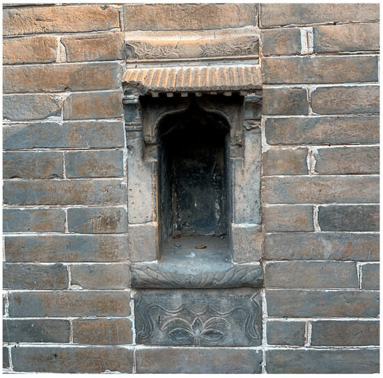 In Shandong residential architecture, there are usually shrines on the walls of the buildings in the northern part of the courtyard (see Figure 2). This is a small space for dialogue with the gods in the family and is an expression of the family’s cultural heritage. Therefore, it also needs to be preserved in the restoration.