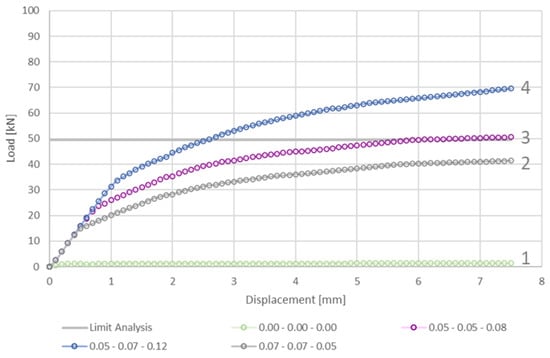 Figure 8. Collapse load numerically computed after the addition of ductile CoBs representing the application of FRP strips [1].