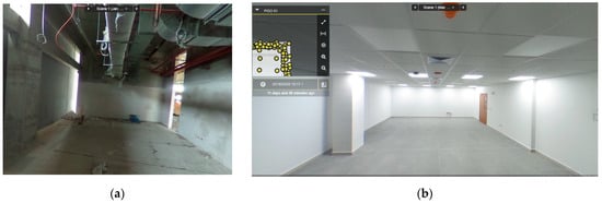 The figures show the implementation of the project: (a) 360° photograph during construction; (b) 360° photograph at the end of construction.
