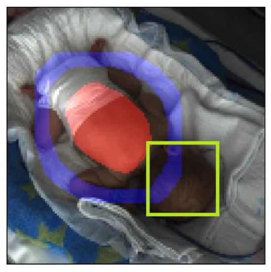 It was easy to conclude that these regions listed above carried specific information. The need to use the full picture was trivial. The abdominal region is the area where respiration can be observed, which is an important descriptor for determining activity phases [8,9,10]. The “ring around the baby’s abdomen” was also important: this area was likely to include the majority of the limbs on the image, if the parameters were chosen correctly, and so we can extract information about the limb movements of the baby. The last region was the baby’s face, giving us information about whether the baby’s eyes are open or not, which is also an important descriptor.