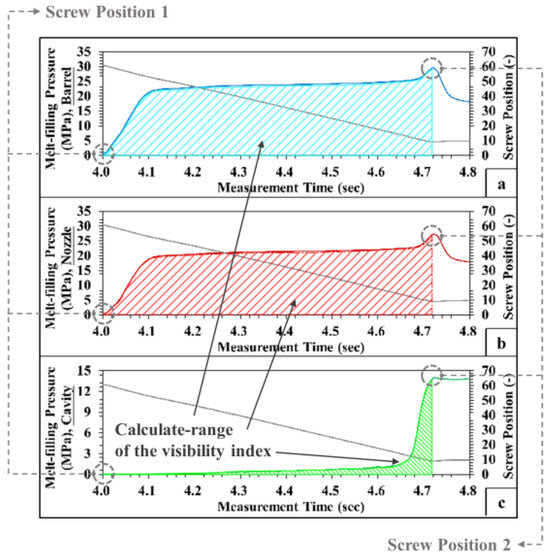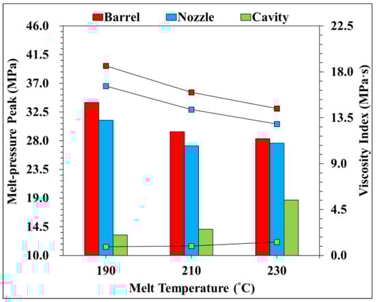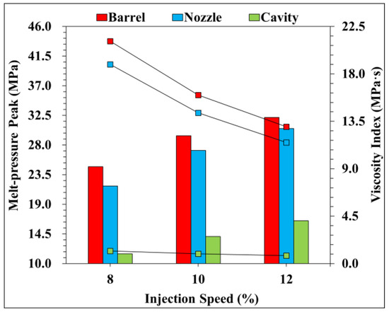 - The melt-filling pressures in the mold cavity, injection barrel, and nozzle changed with the process parameters. The injection speed had a relatively significant impact on the variation in the barrel pressure.