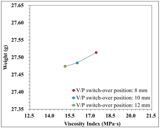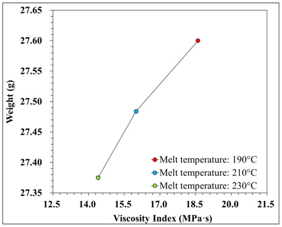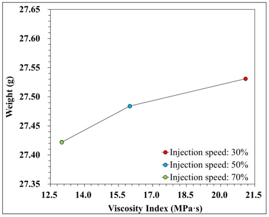 - Research into the correlation between the viscosity index variation in the injection barrel and part weight in response to different process parameters shows that changes in the melt temperature had a relatively significant impact on part weight and that changes in the injection speed had a relatively significant impact on viscosity variation.