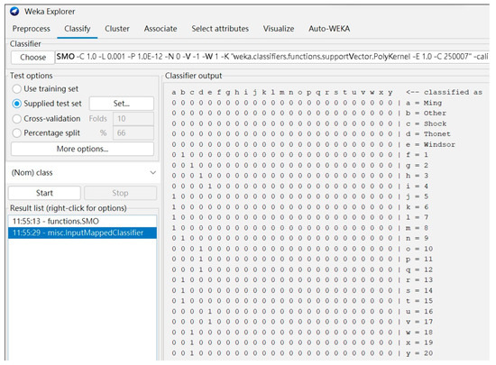 Table 4 shows that the correctness of each classifier was similar, but the performance of SMO was significantly lower than the other classifiers in terms of failure rate and absolute difference. This indicated that SMO was more stable in classification.